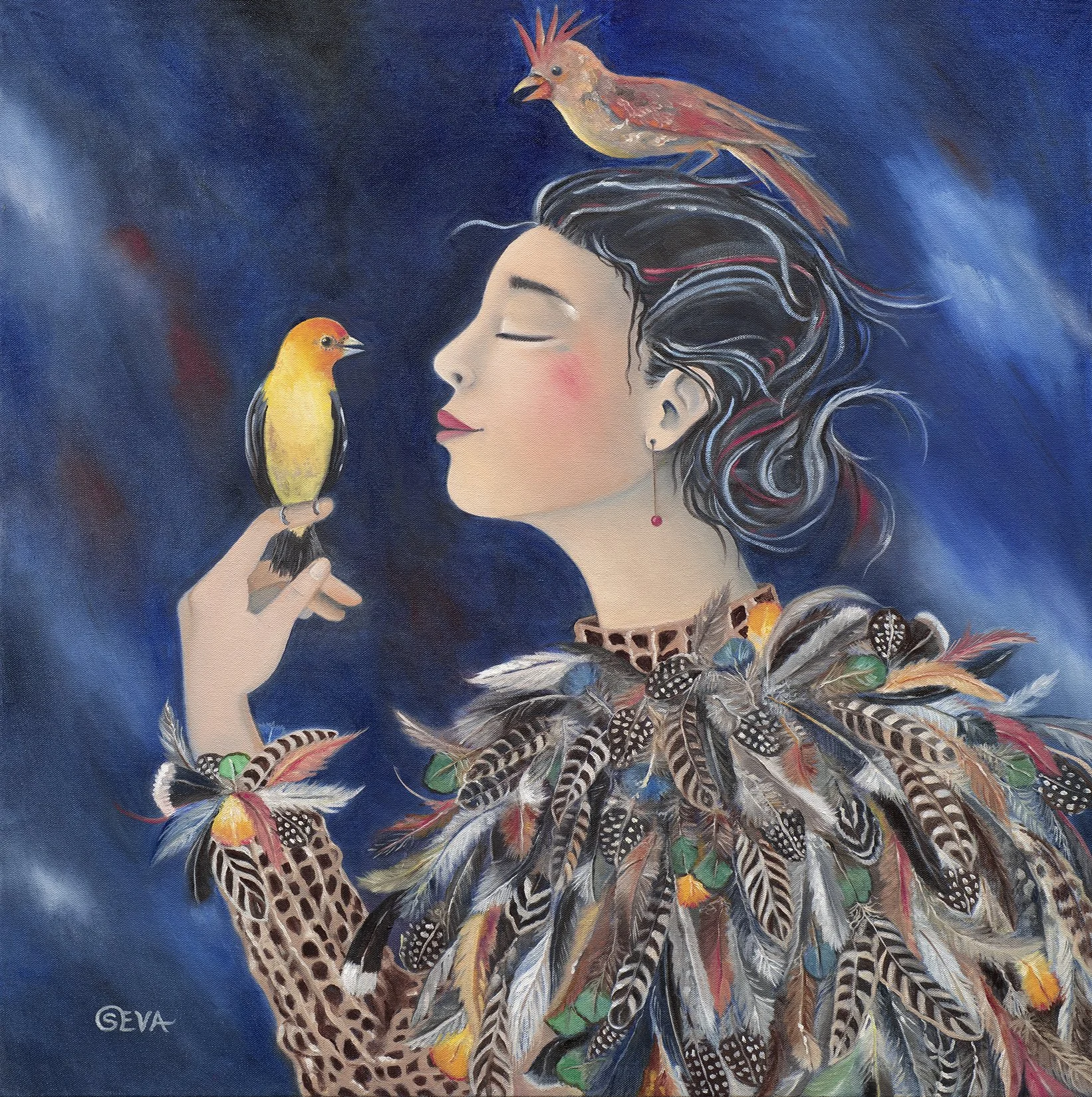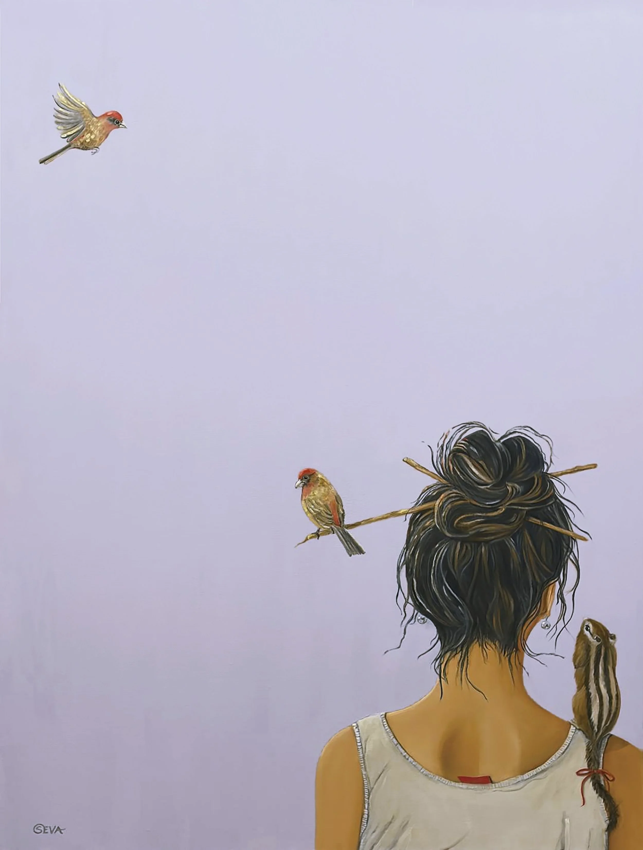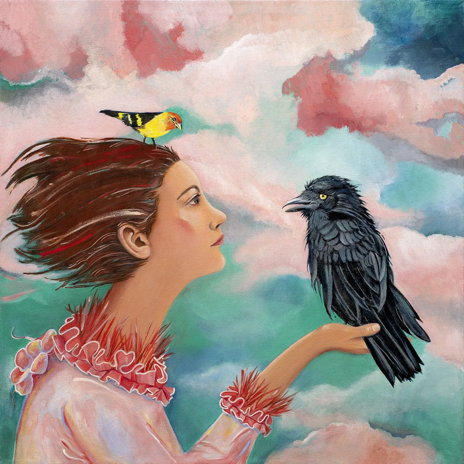 Whispers between Wings, Oil on Canvas, 30” x 30”