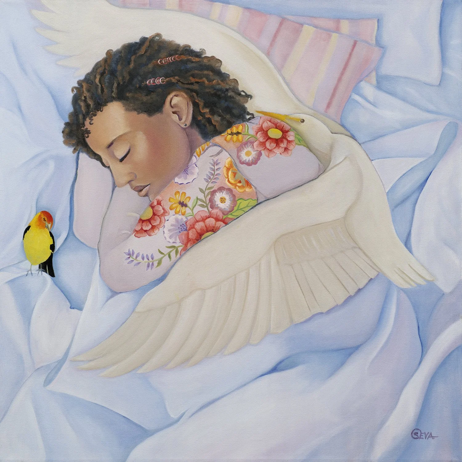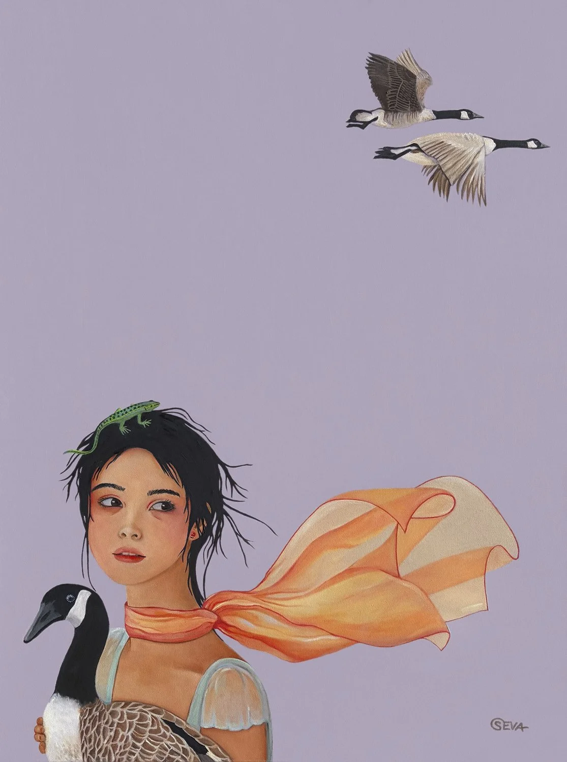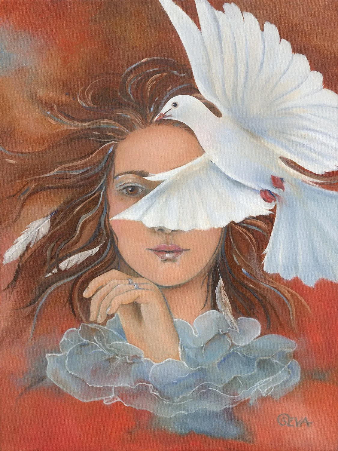 Whispers between Wings, Oil on Canvas, 30” x 30”