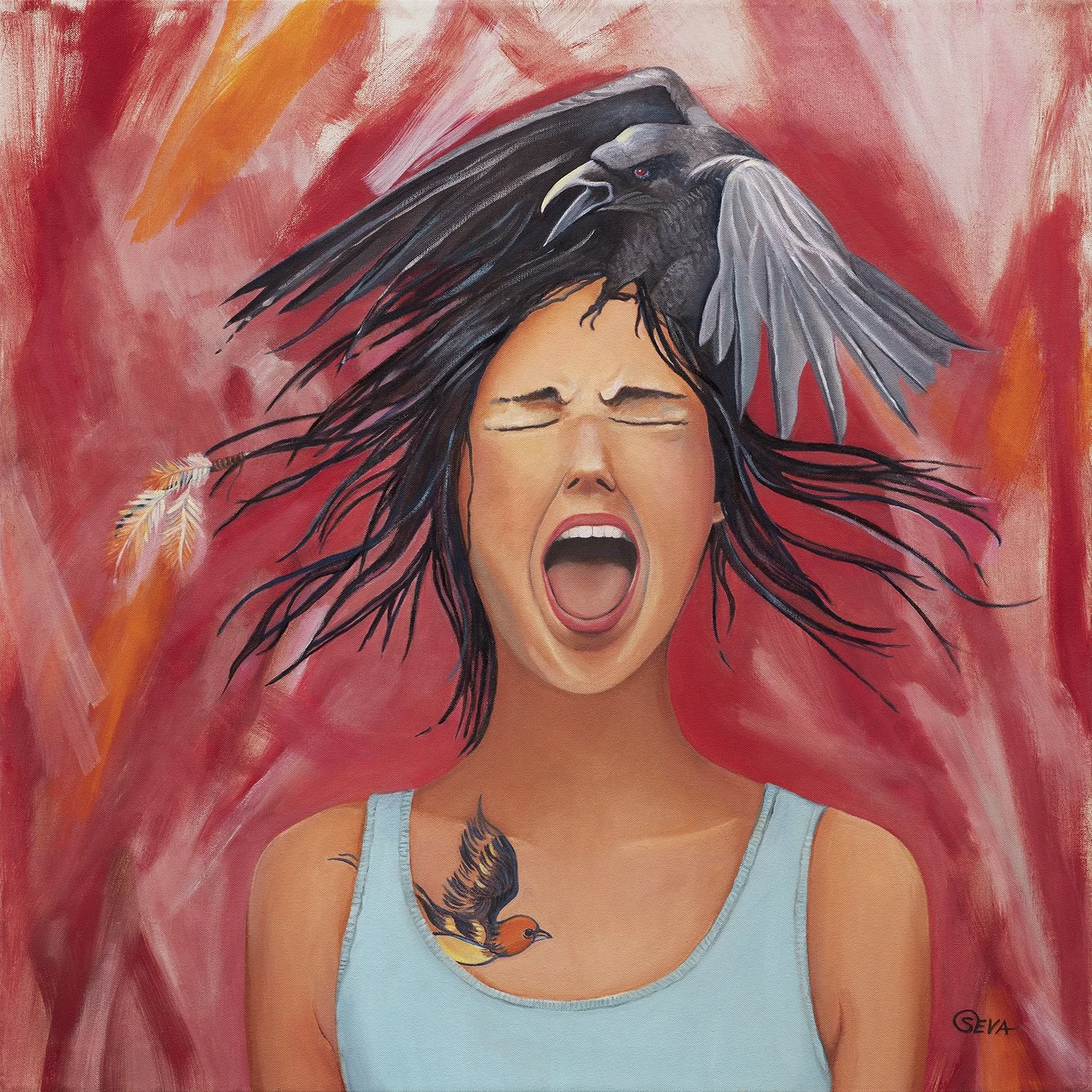 Tears and Feathers, Oil on Canvas, 30” x 30”