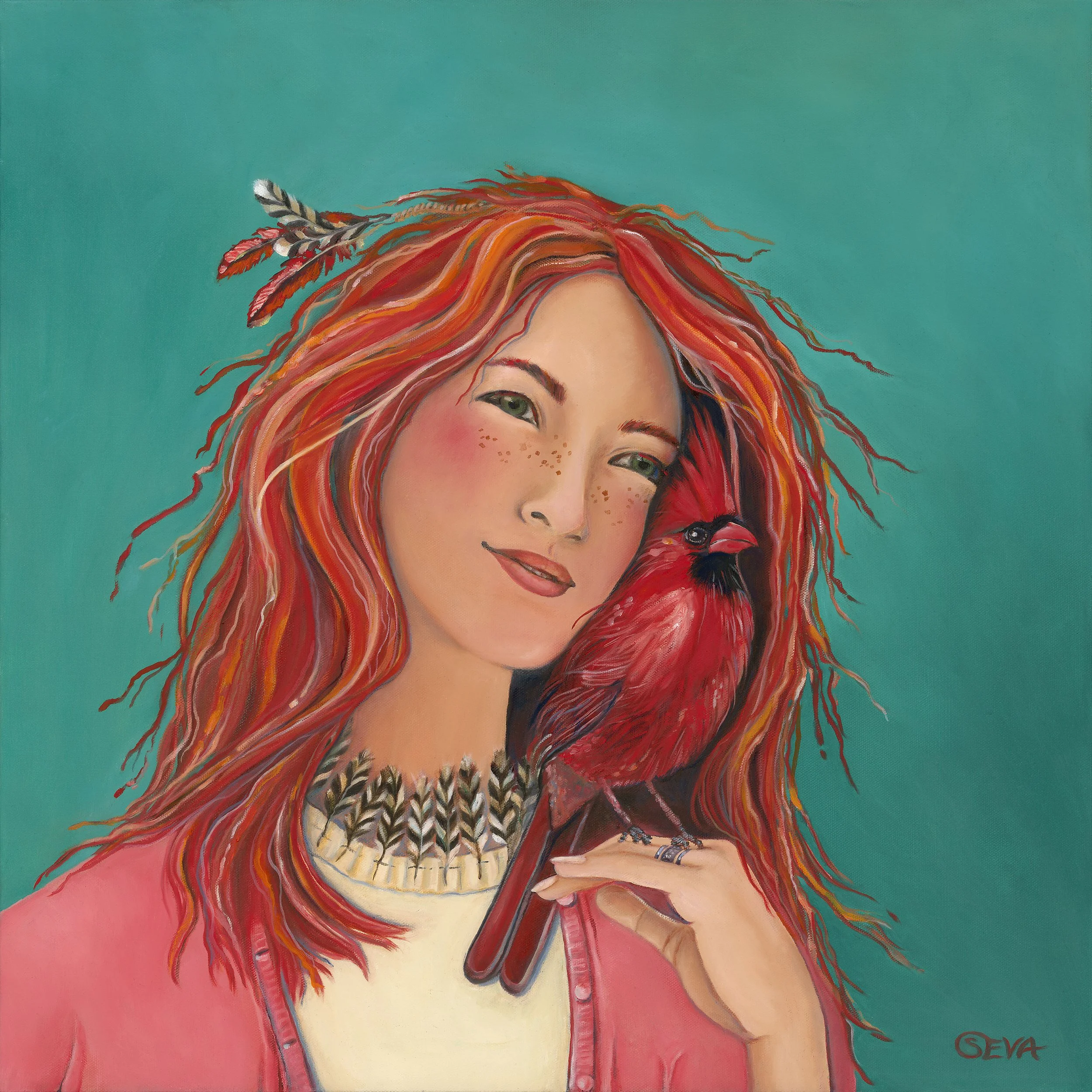 Red Wing Wild Heart, Oil on Canvas, 24” x 24”